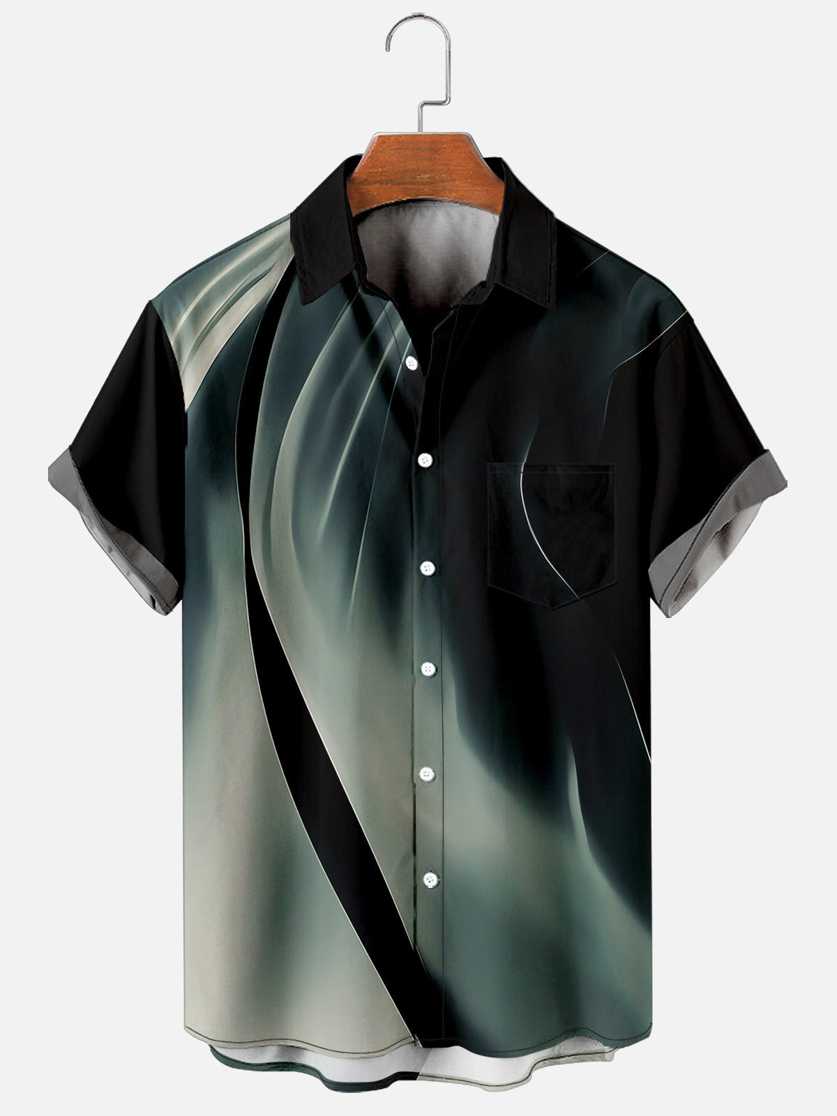 Men's Simple Psychedelic Tech Line Pattern Shirt With Pockets