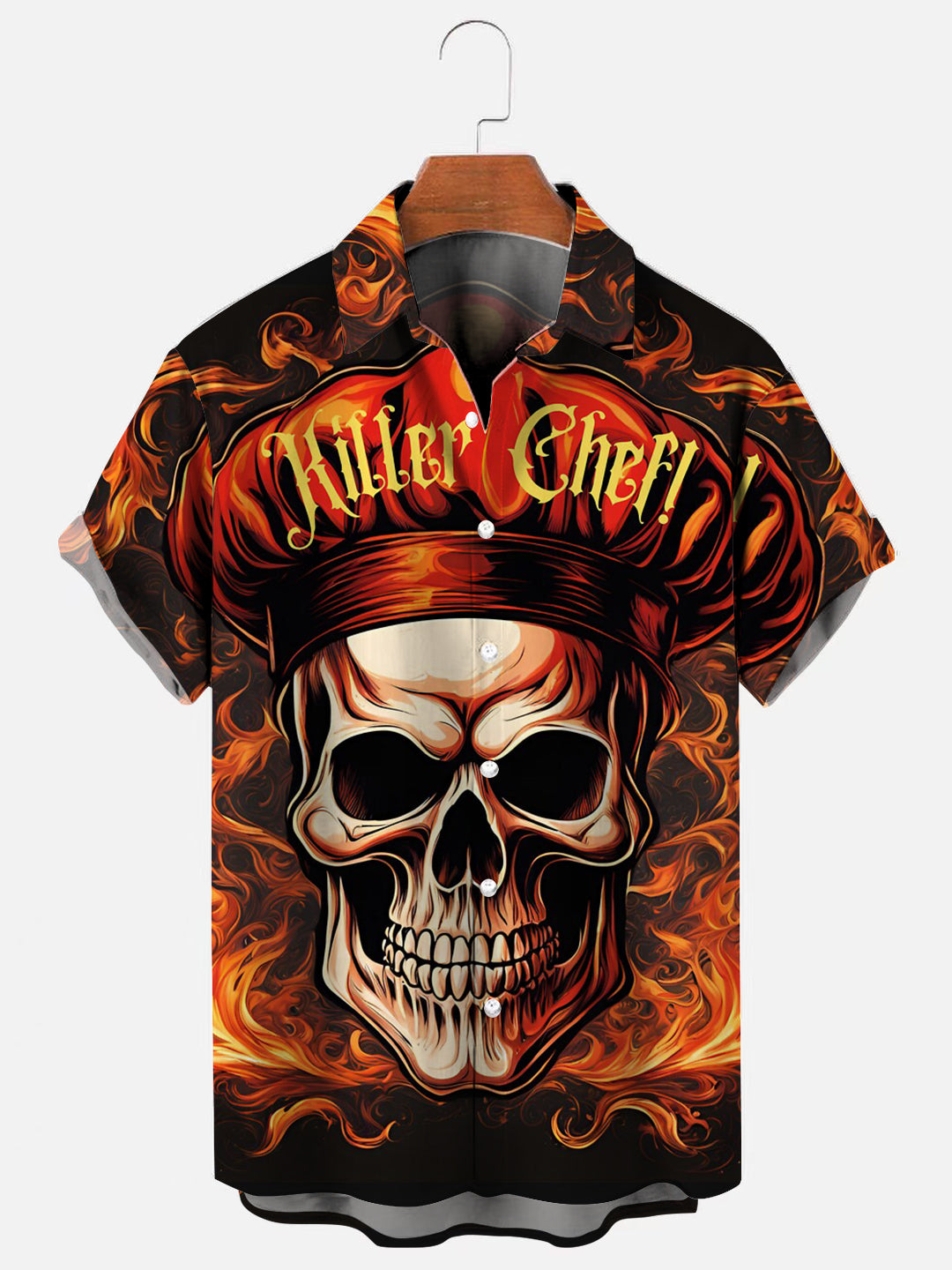 Men's Skull Chef Print Casual Short Sleeve Shirt