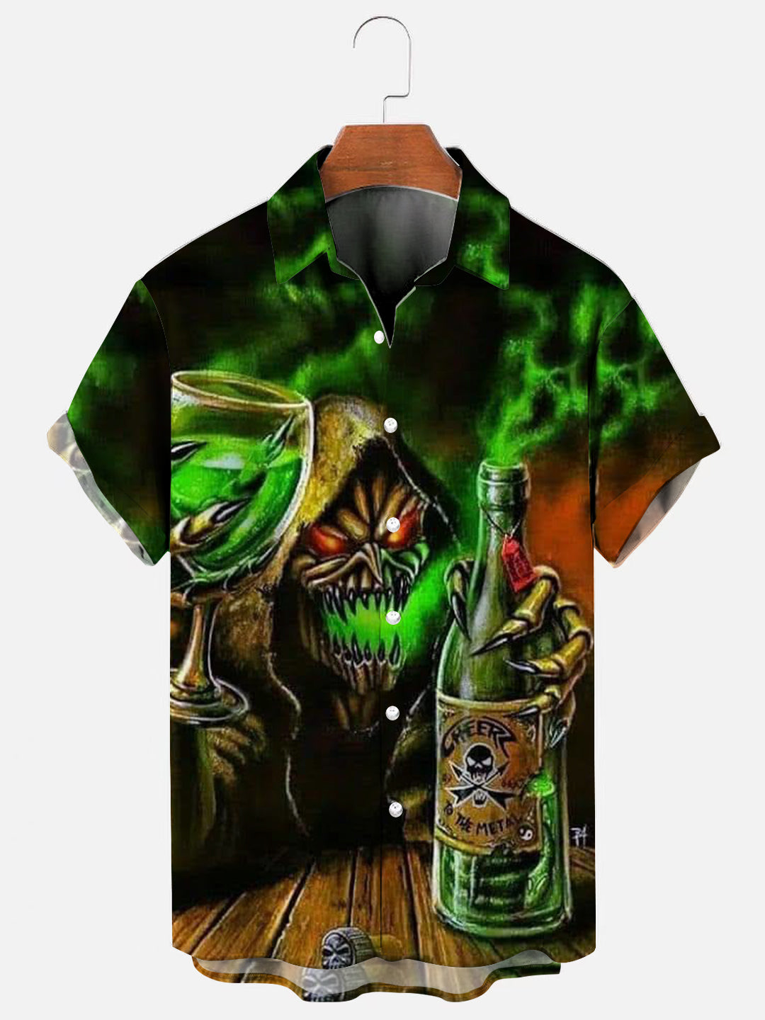 Men's Skull Drinking Print Hawaiian Short Sleeve Shirt