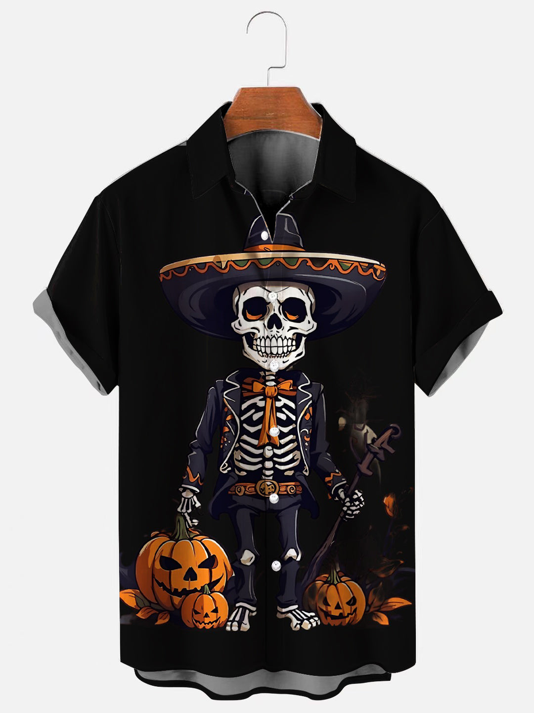 Men's Skull Halloween Mexican Art Print Holiday Short Sleeve Shirt