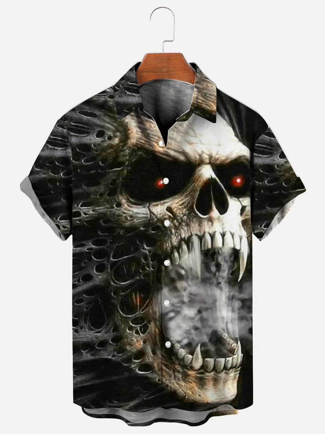 Men's Skull Print Hawaiian Casual Short Sleeve Shirt