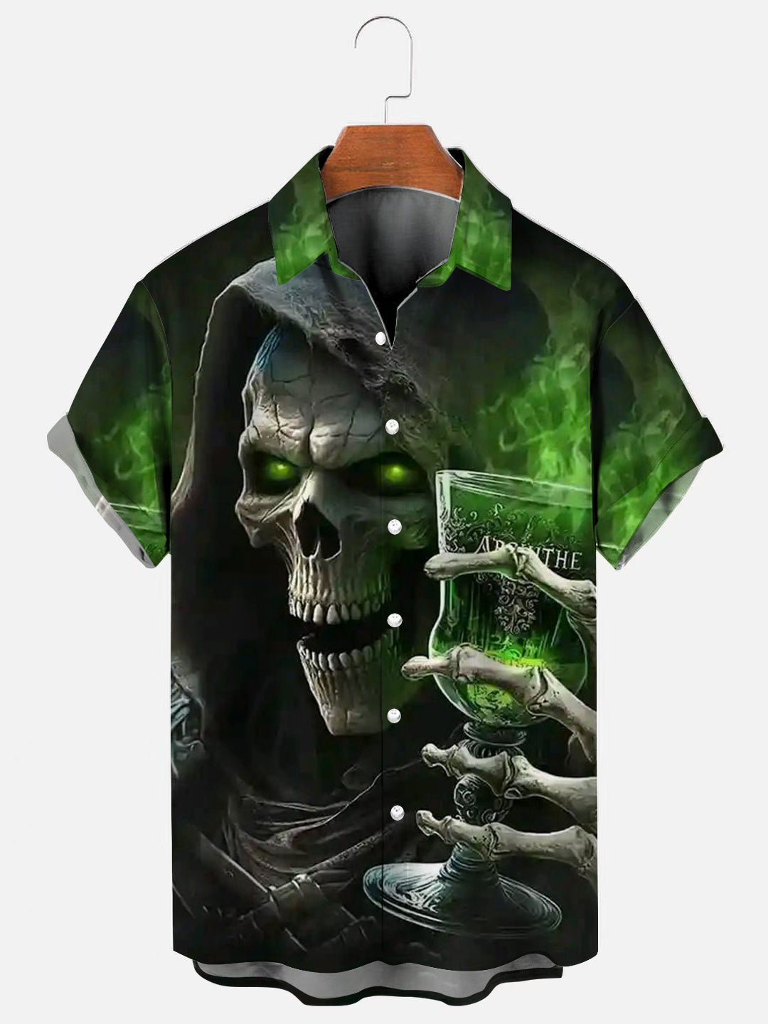 Men's skull wine glass print Hawaiian short sleeve shirt