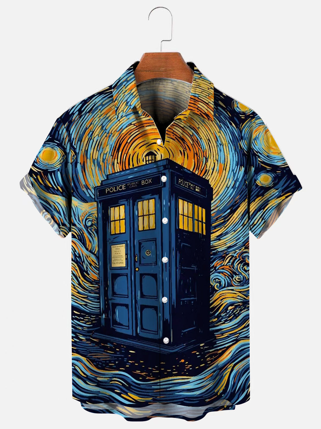 Men's Starry Blue Box Print Hawaiian Short Sleeve Shirt