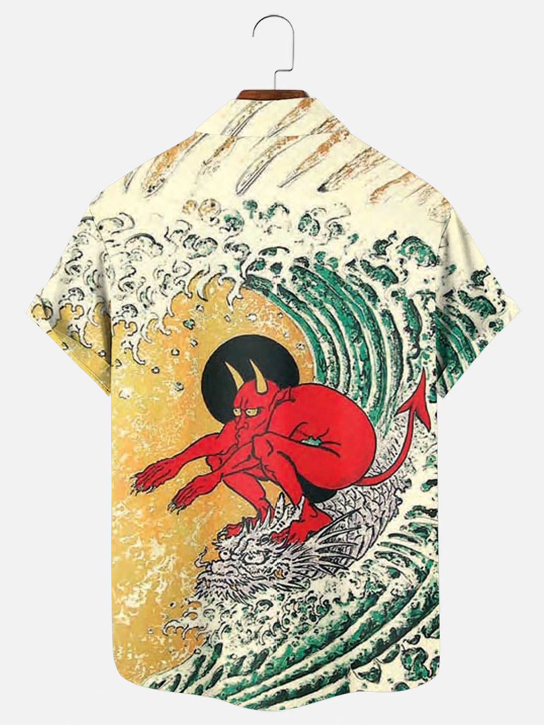 Men's Surf Devil Art Print Hawaiian Short Sleeve Shirt