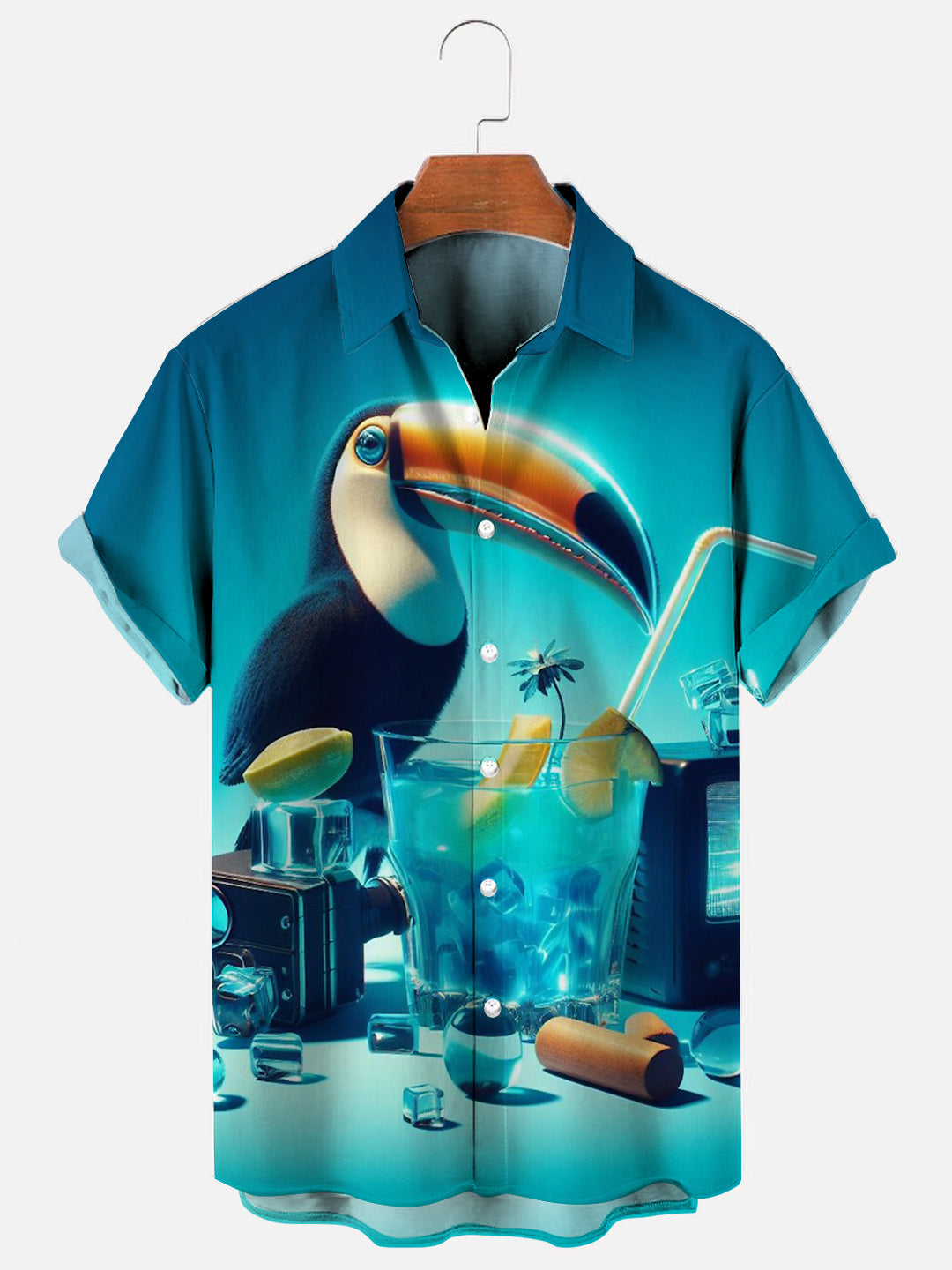 Men's Toucan Cocktail Poster Print Hawaiian Short Sleeve Shirt