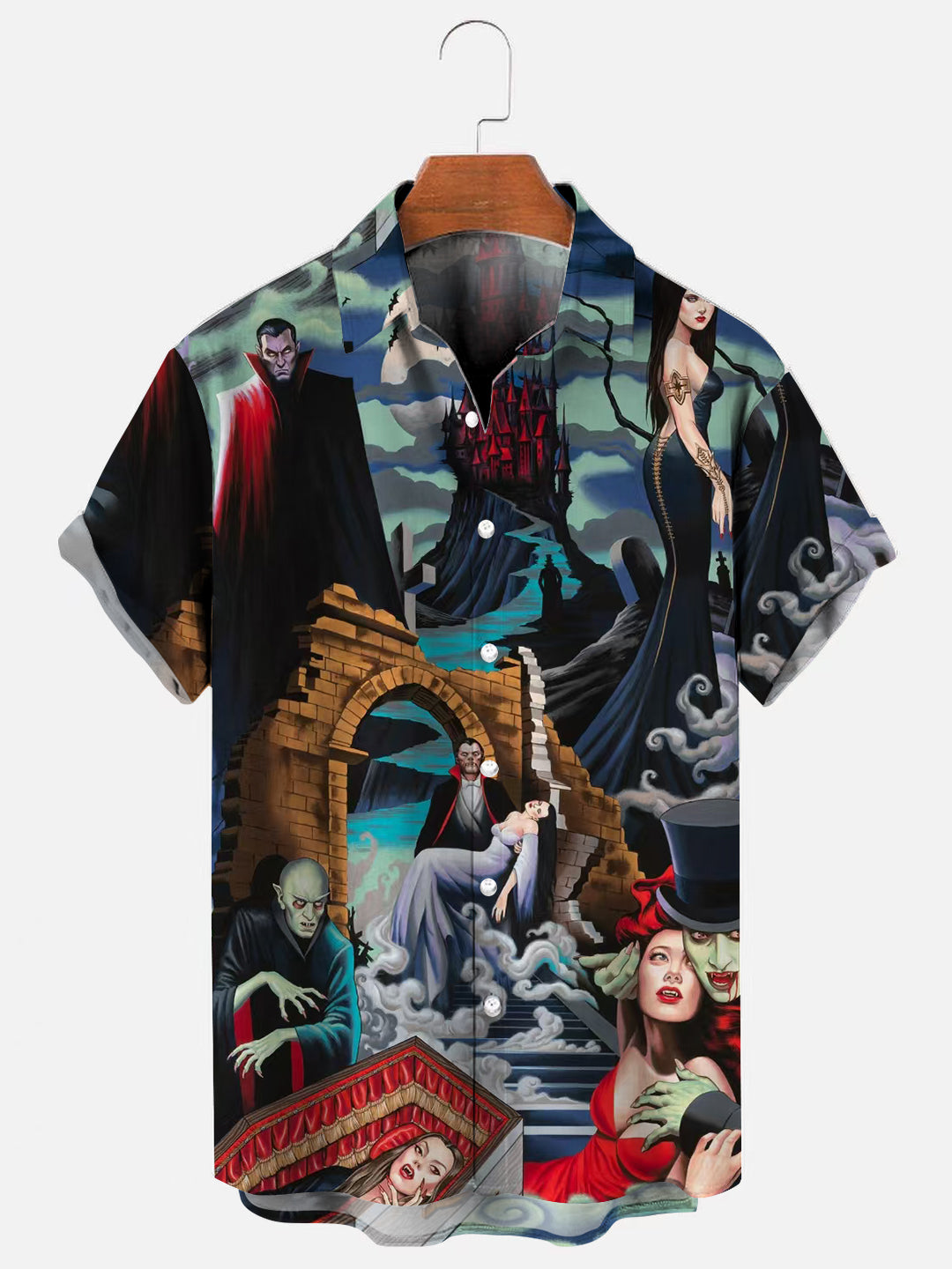 Men's Vampire Nights Halloween Print Hawaiian Short Sleeve Shirt