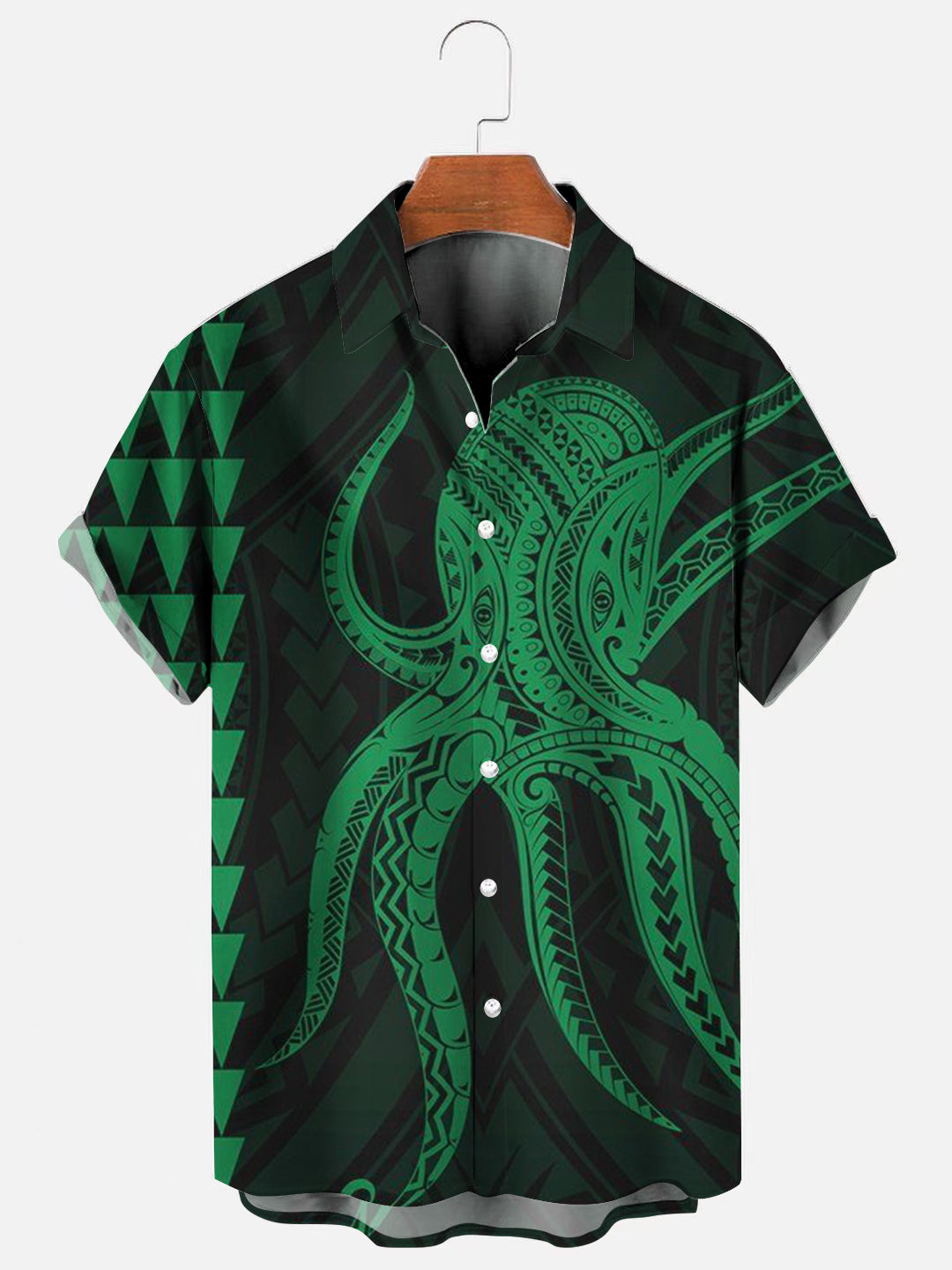 Men's Viking Octopus Print Hawaiian Short Sleeve Shirt