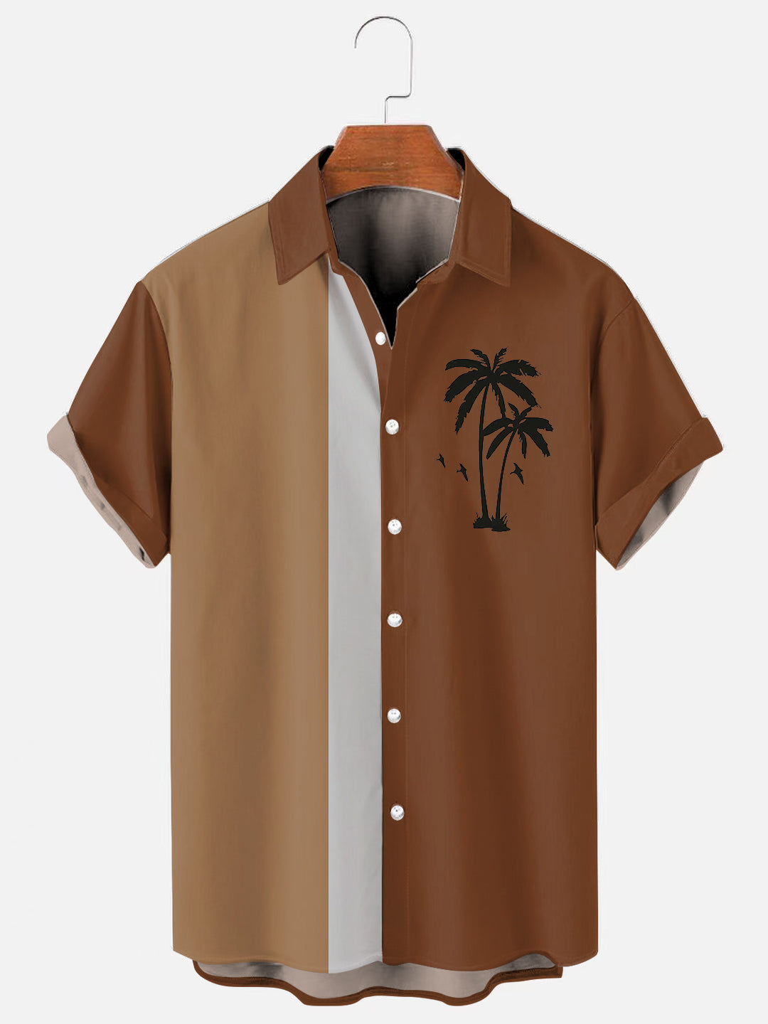 Men's Vintage Bowling Palm Tree Print Hawaiian Short Sleeve Shirt