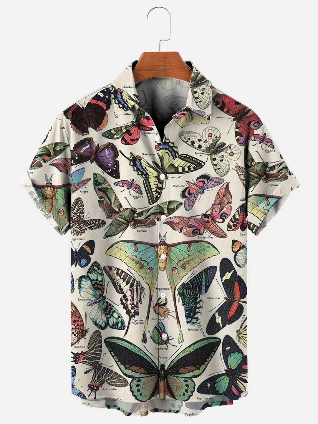 Men's Vintage Butterfly Print Hawaiian Short Sleeve Shirt