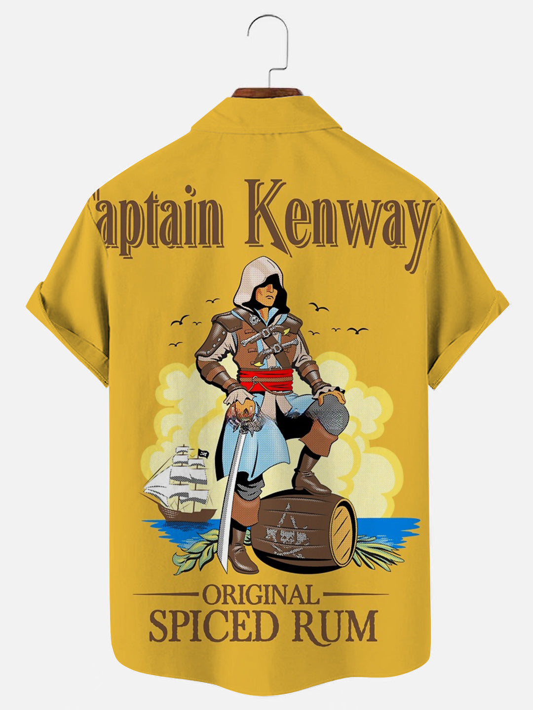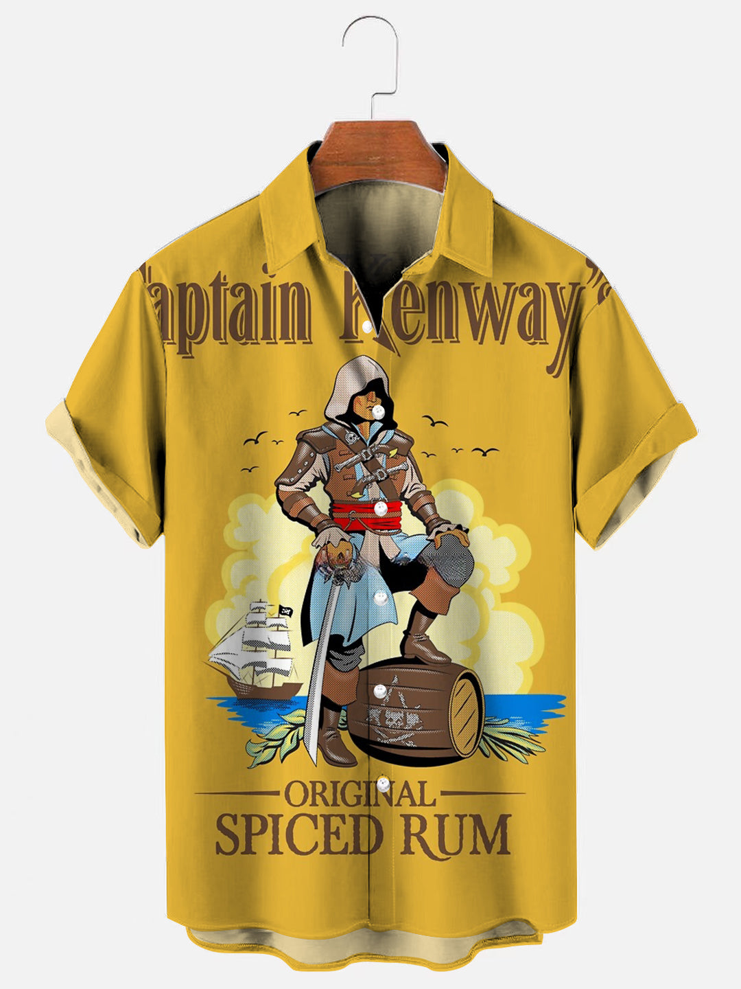 Men's Vintage Captain Print Hawaiian Casual Short Sleeve Shirt
