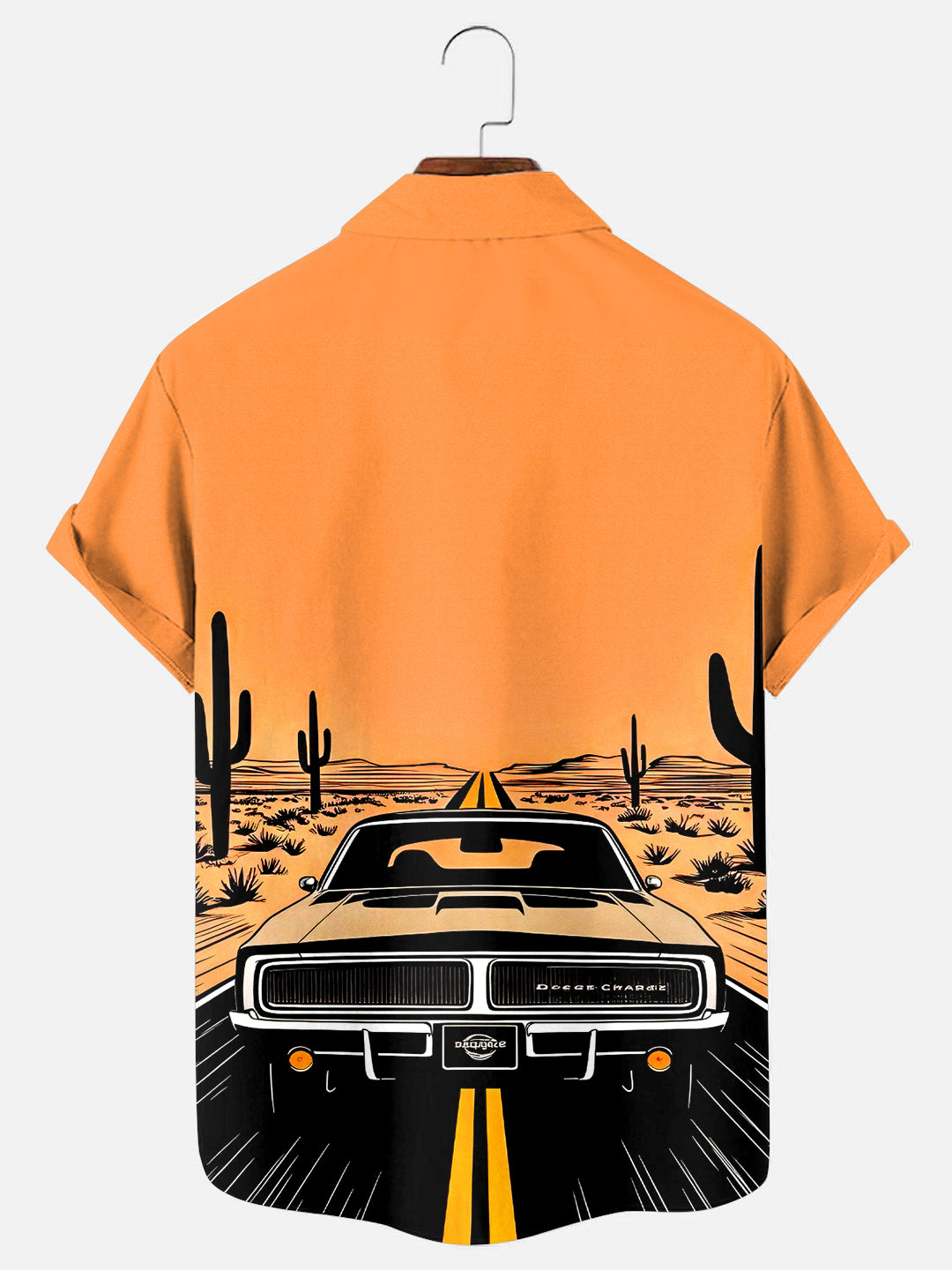 Men's Vintage Car Print Hawaiian Short Sleeve Shirt