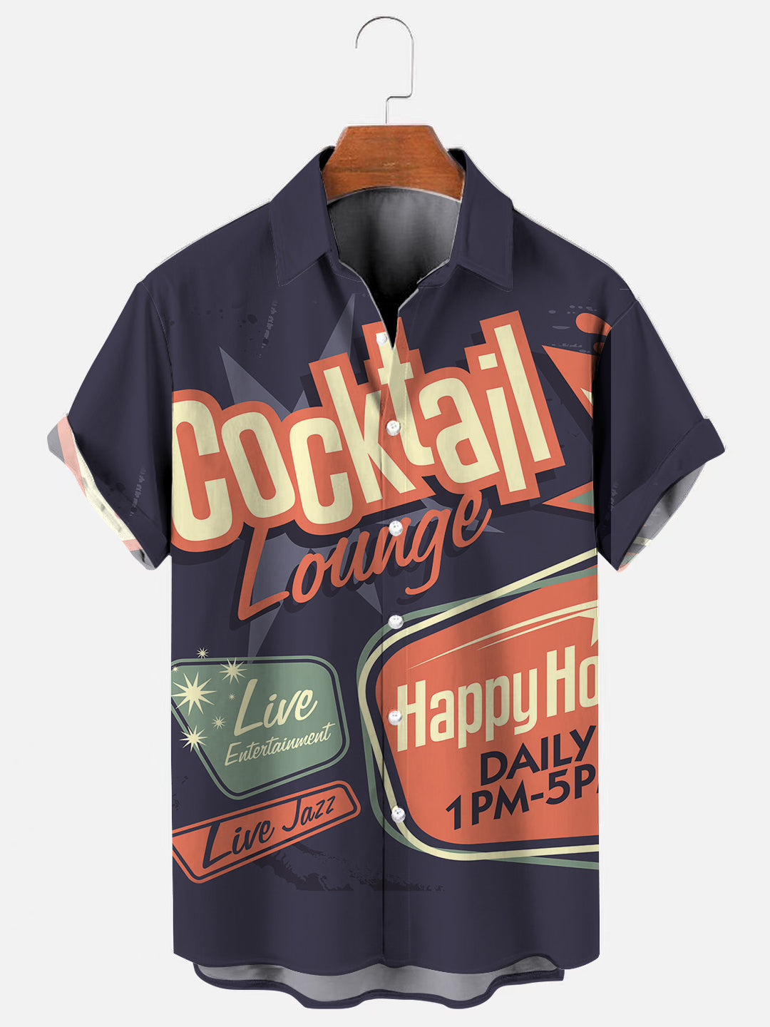 Men's Vintage Cocktail Lounge Poster Print Hawaiian Short Sleeve Shirt