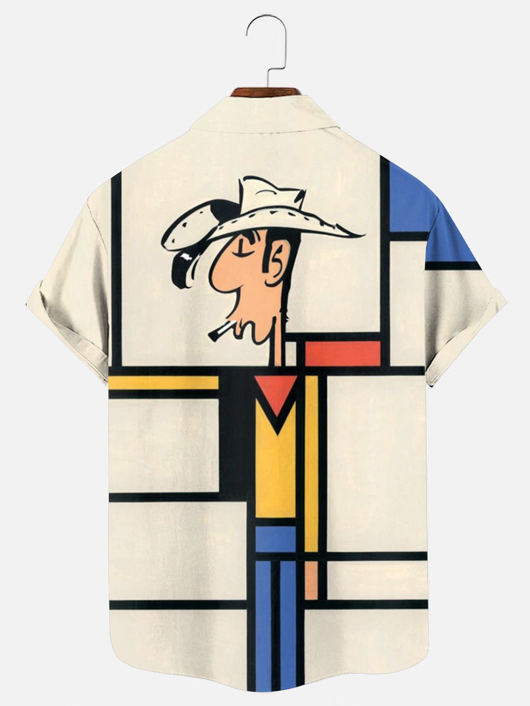 Men's Vintage Denim Art Print Hawaiian Short Sleeve Shirt