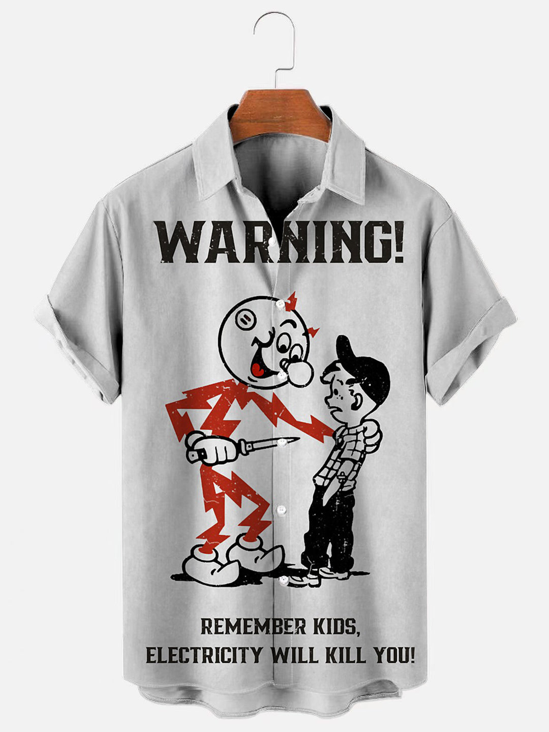 Men's 70's Vintage Electricity Warning Logo Print Hawaiian Breathable Short Sleeve Shirt