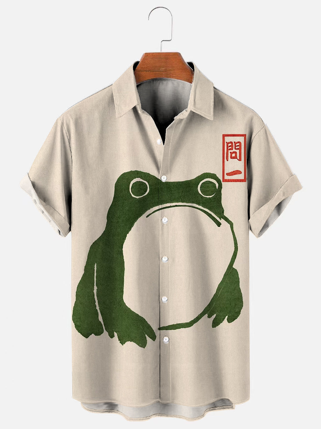 Men's Vintage Frog Ukiyoe Print Hawaiian Short Sleeve Shirt