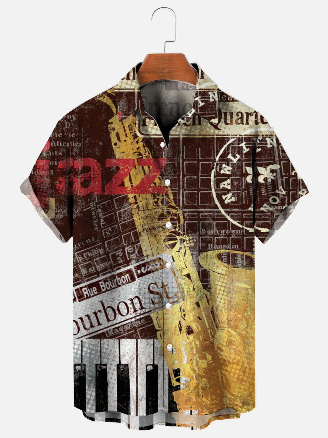 Men's Vintage Jazz Poster Print Hawaiian Short Sleeve Shirt