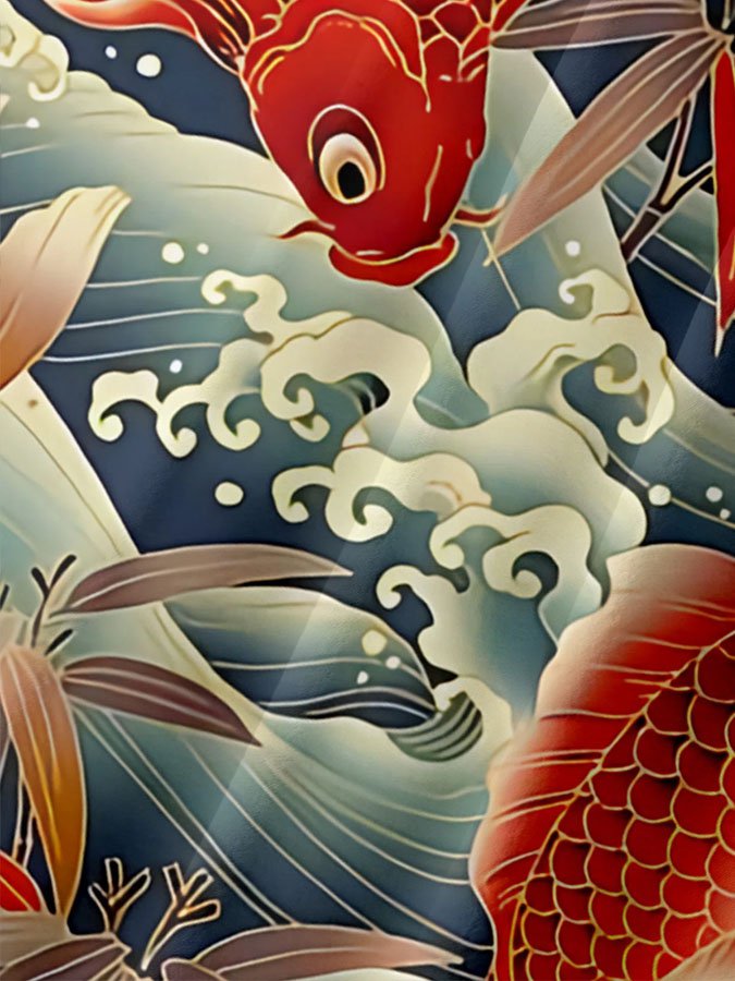 Men's Vintage Koi red Carp Fish Transfer Lucky Short Sleeve Hawaii Shirt