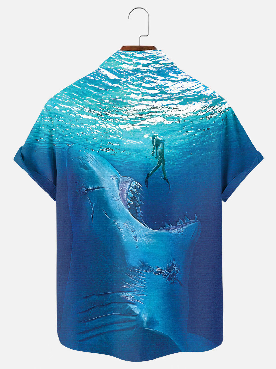 Men's Vintage Megalodon Beauty Print Hawaiian Short Sleeve Shirt