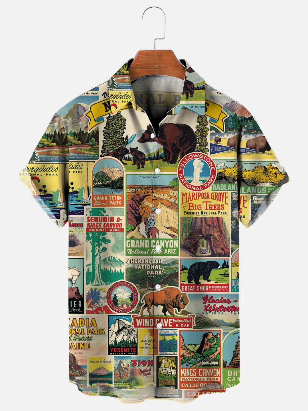 Men's Vintage National Parks Poster Print Hawaiian Short Sleeve Shirt