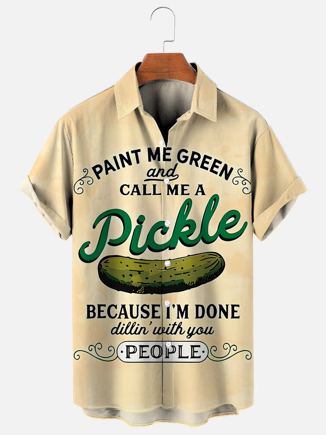 Men's Vintage Pickle Cucumber Print Hawaiian Short Sleeve Shirt