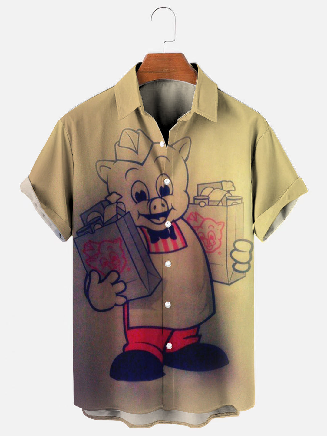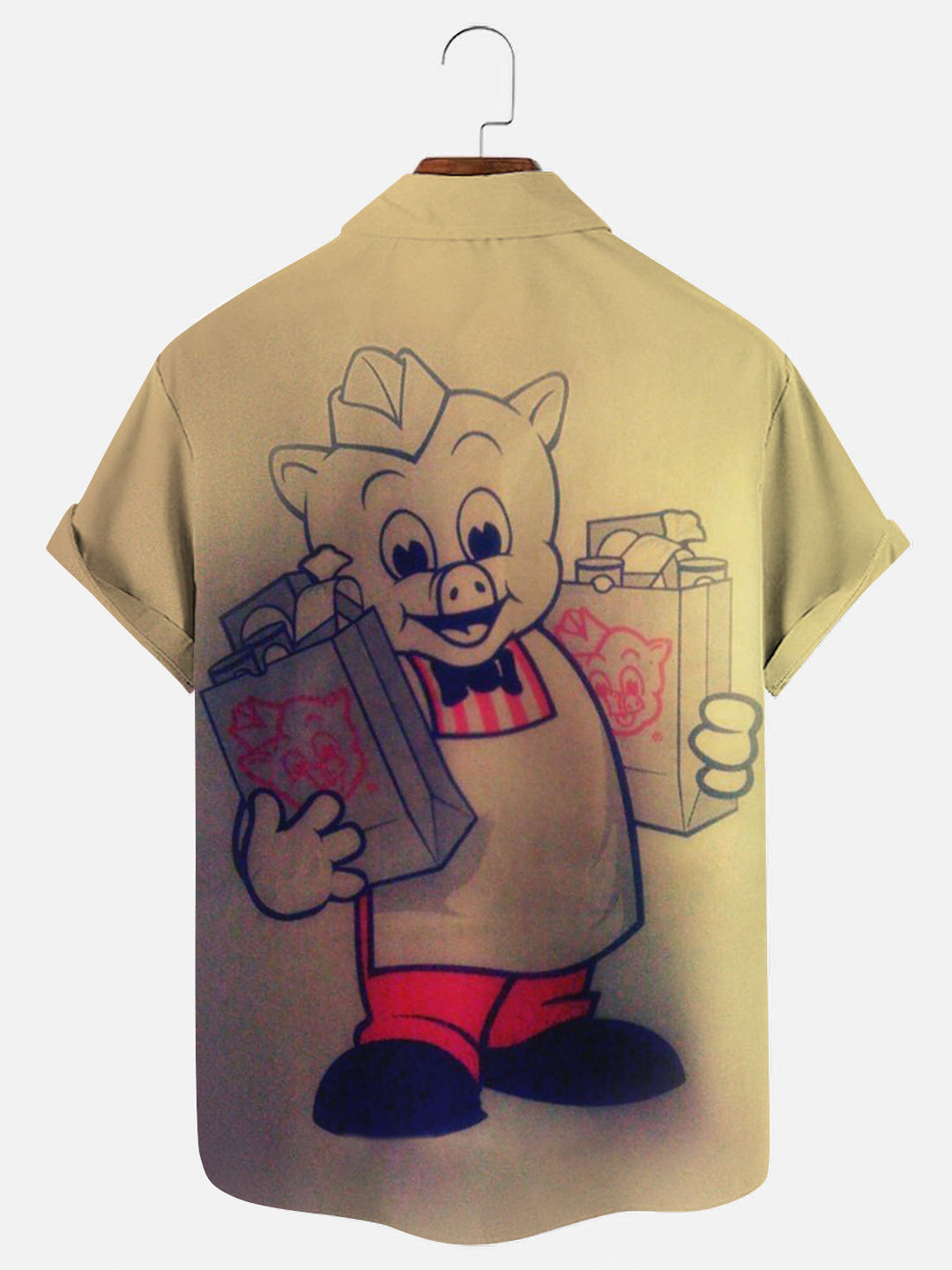 Men's Vintage Piggy Print Hawaiian Short Sleeve Shirt