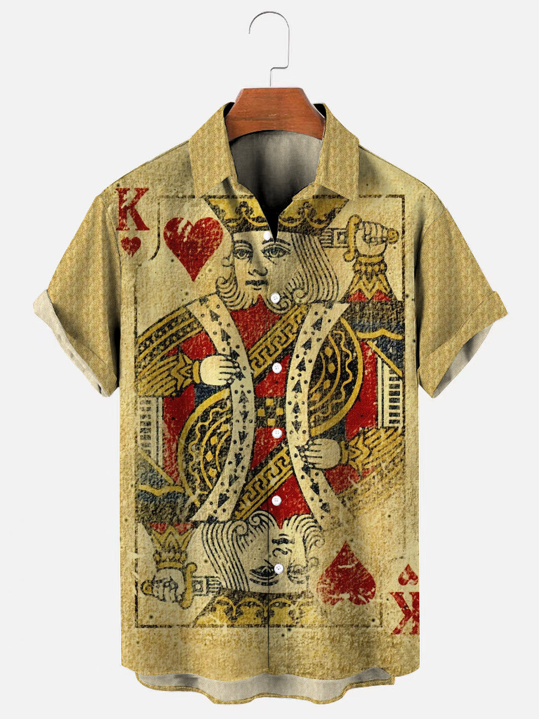 Men's Vintage Playing Card Print Hawaiian Short Sleeve Shirt