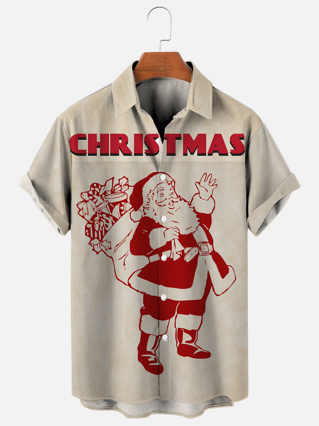 Men's Vintage Santa Poster Print Holiday Short Sleeve Shirt