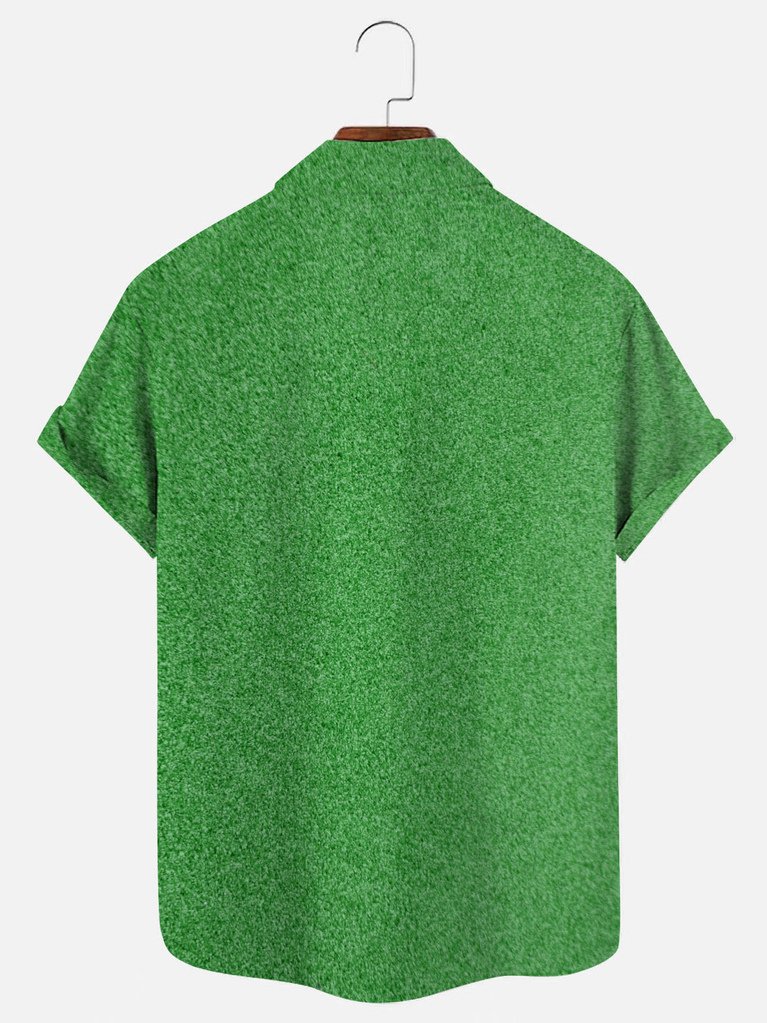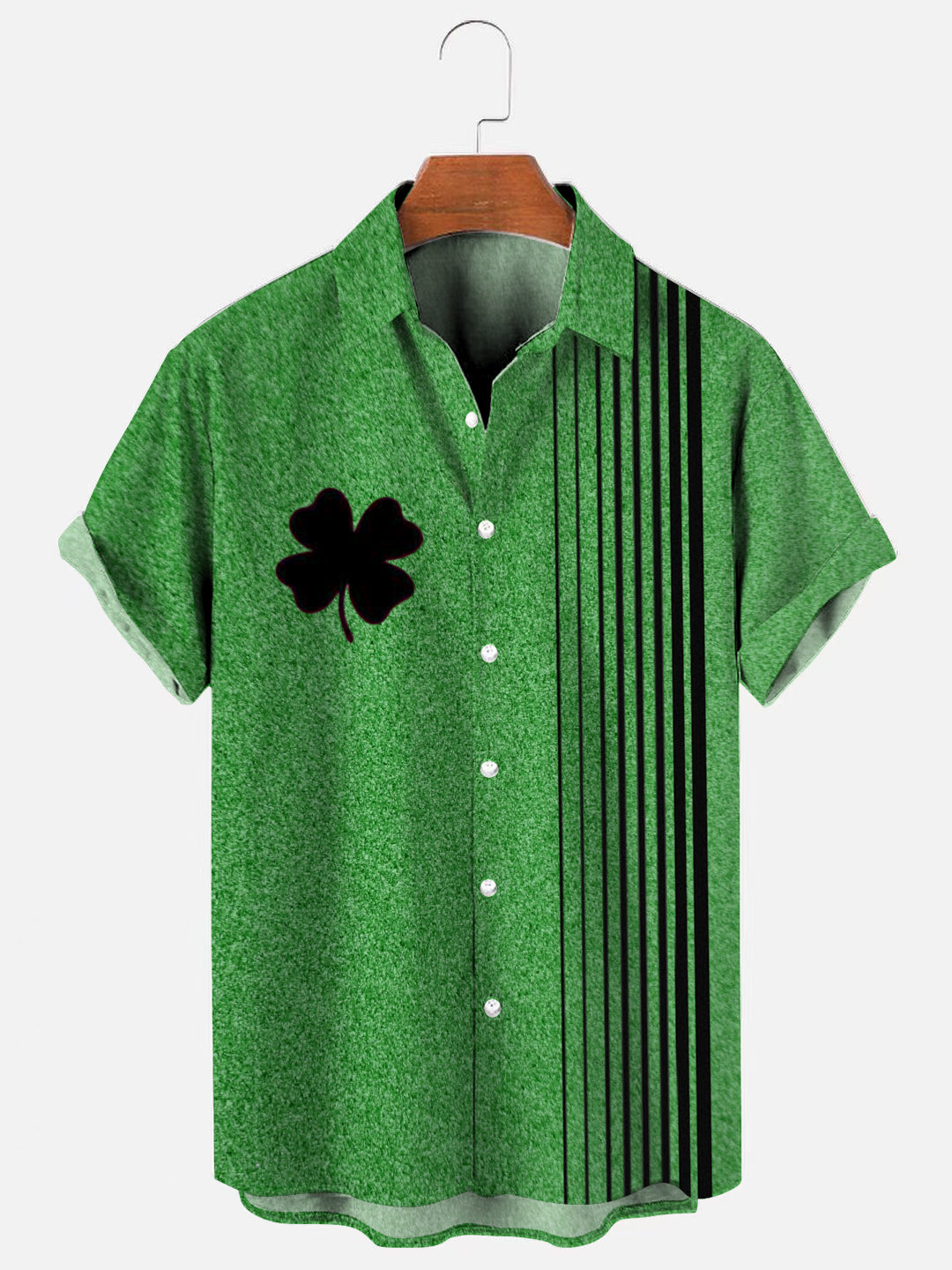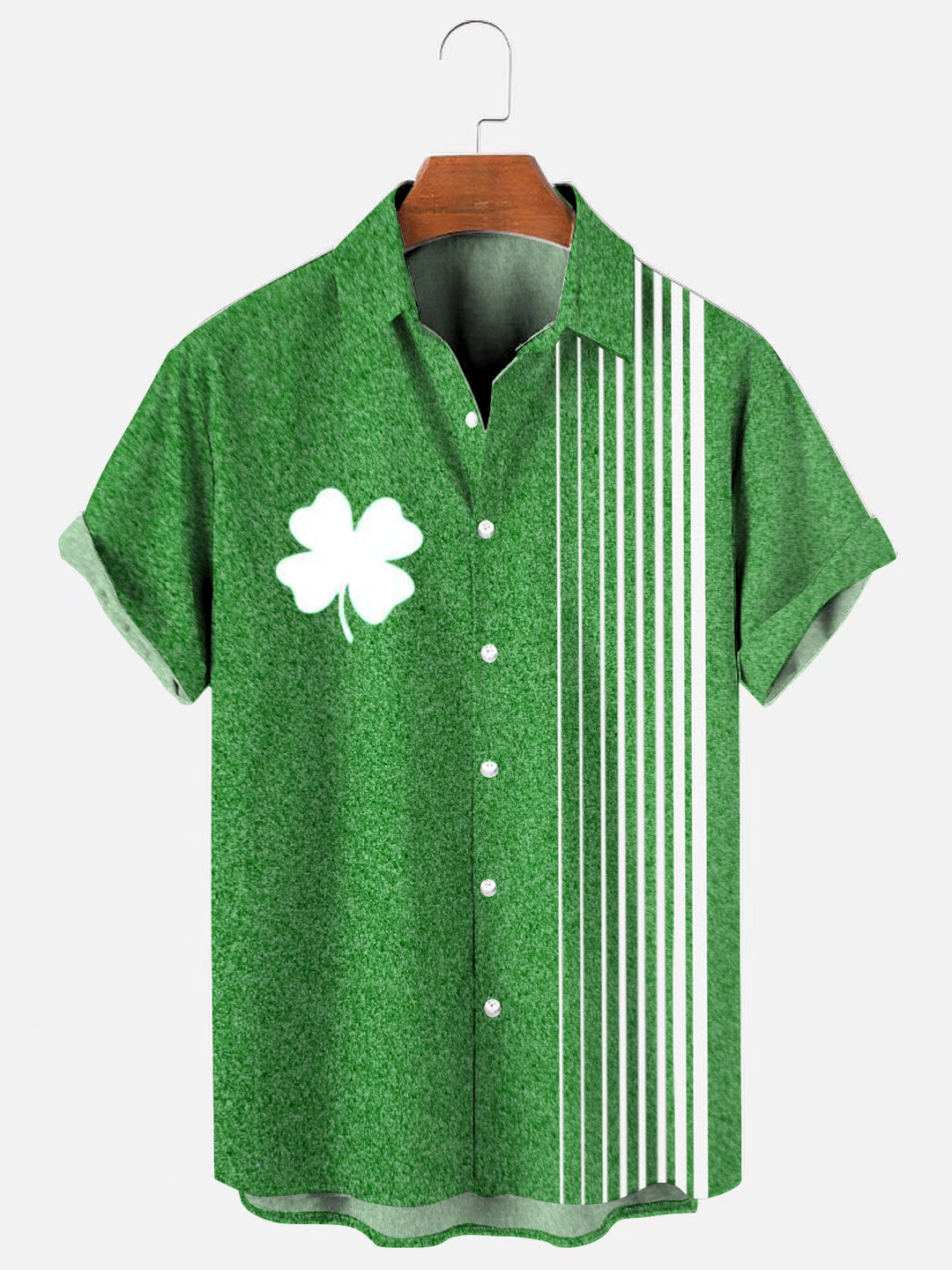 Men's Vintage St. Patrick Print Striped Holiday Short Sleeve Shirt