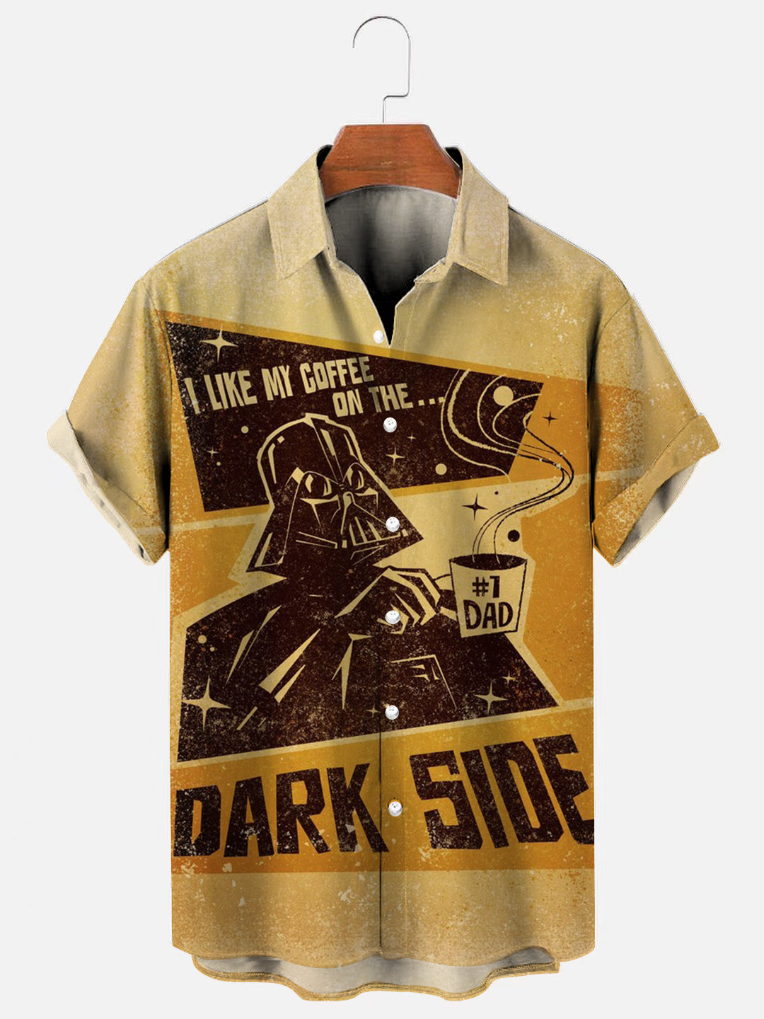 Men's Vintage Star Wars Coffee Poster Print Hawaiian Short Sleeve Shirt