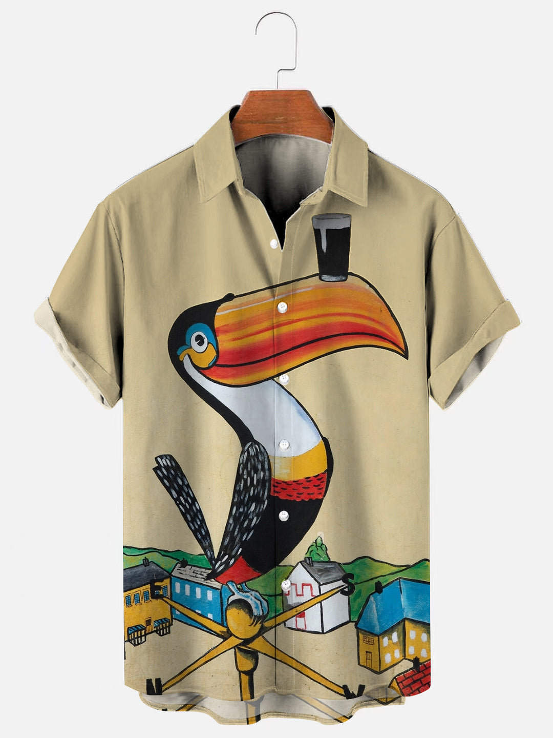 Men's Vintage Toucan Black Beer Print Hawaiian Short Sleeve Shirt