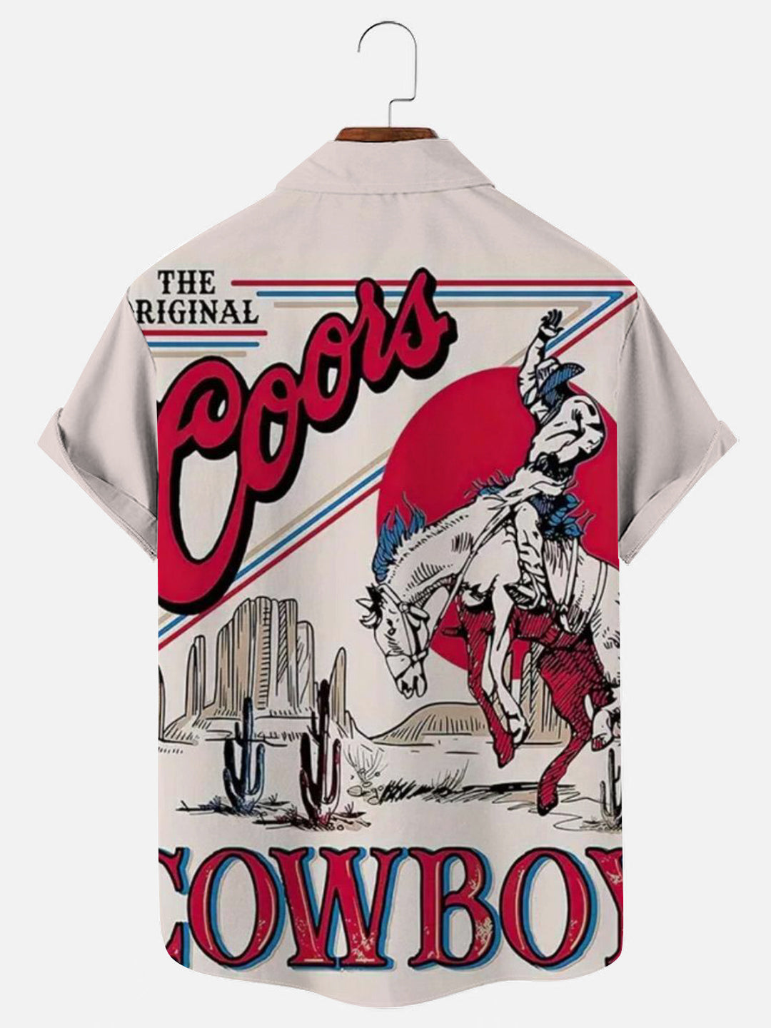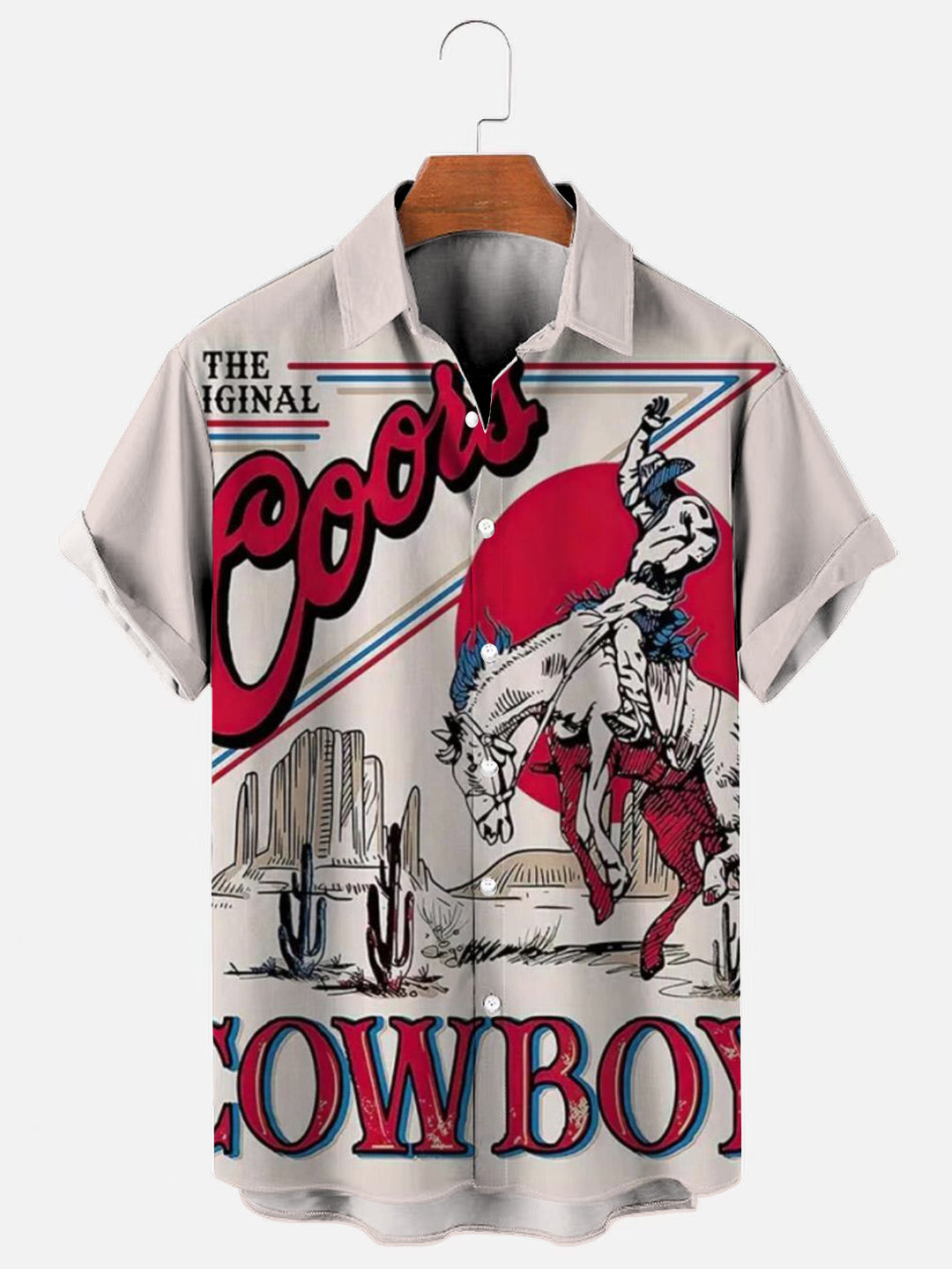 Men's Vintage Western Denim Print Hawaiian Short Sleeve Shirt