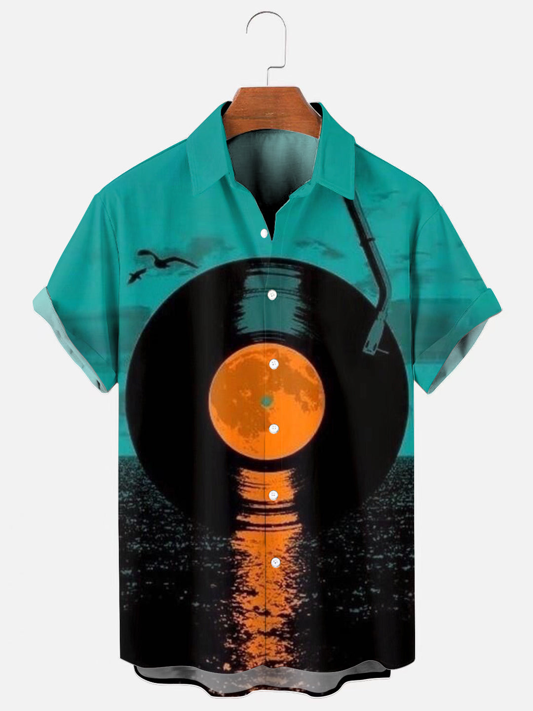 Men's Vinyl Record Creative Sunset Poster Print Short Sleeve Shirt