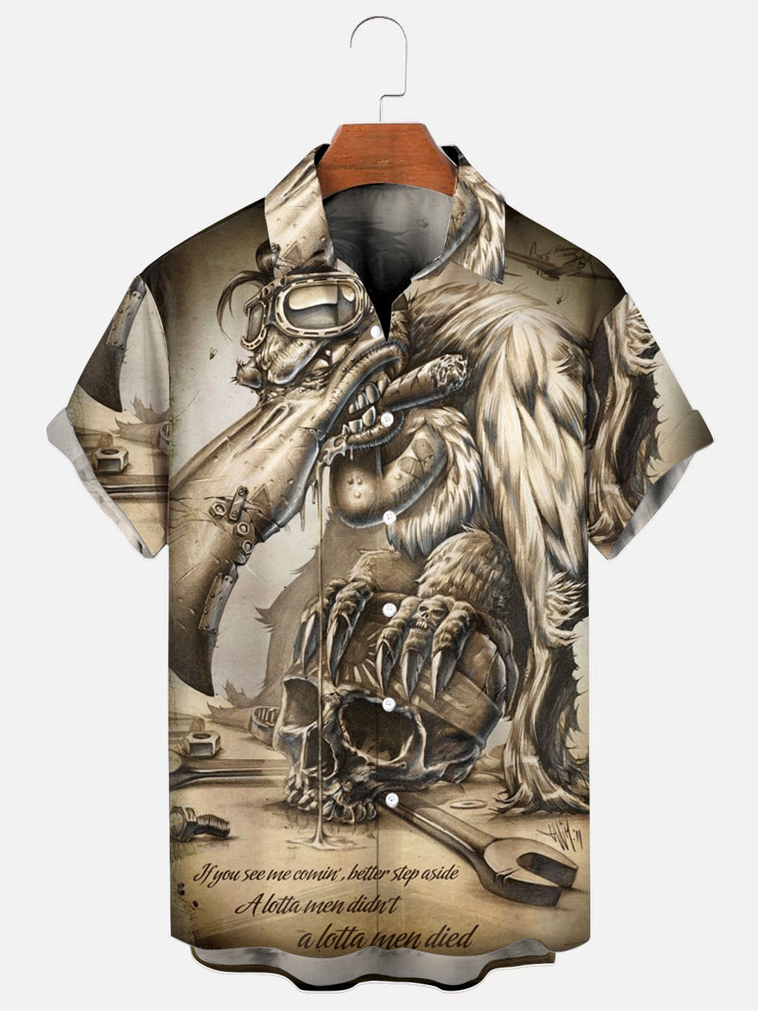 Men's Vulture Skull Print Hawaiian Short Sleeve Shirt