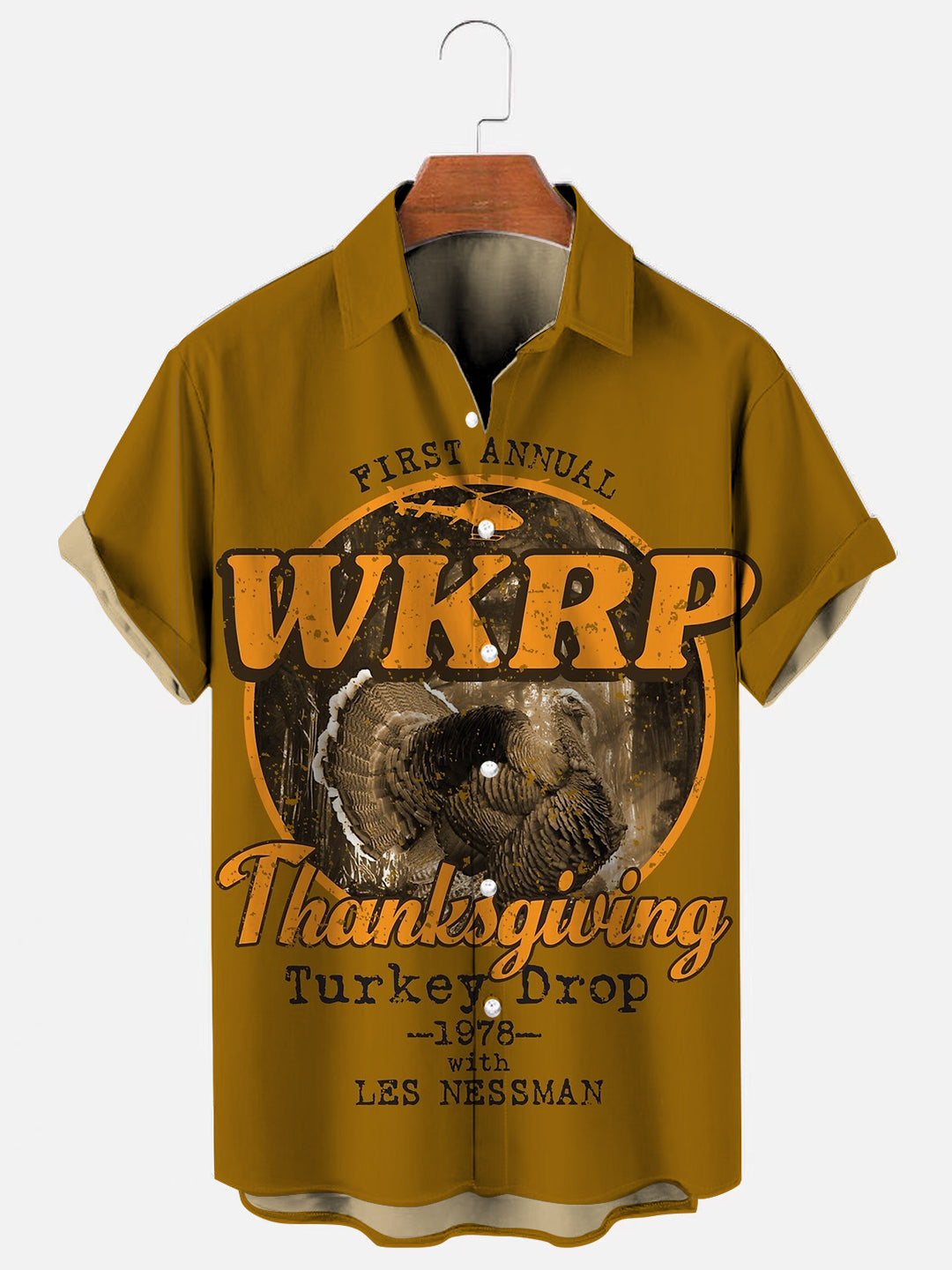 Men's Wkrp Turkey Drop Thanksgiving Holiday Short Sleeve Shirt