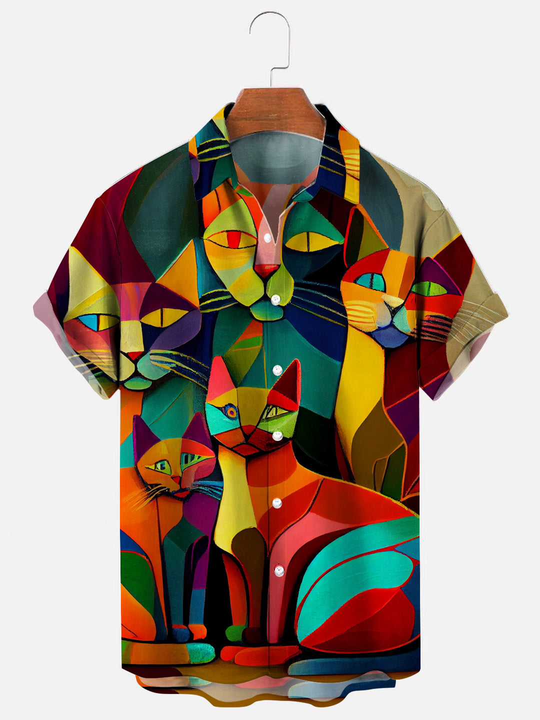 Picasso Cat Art Print Casual Short Sleeve Shirt