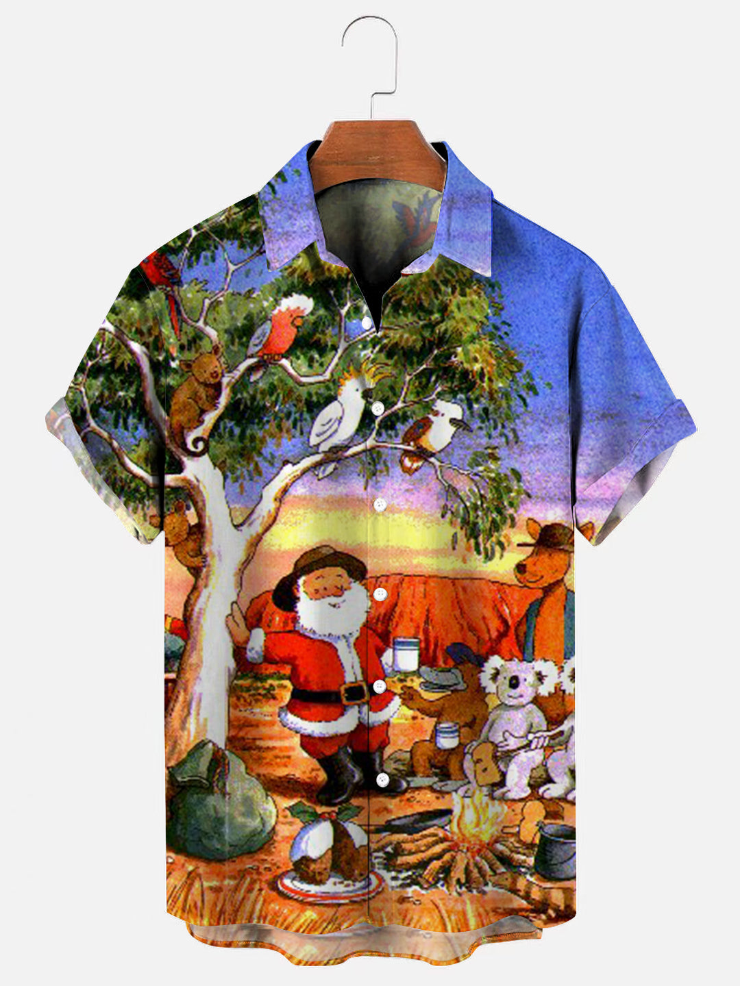 Santa Print Holiday Casual Short Sleeve Shirt