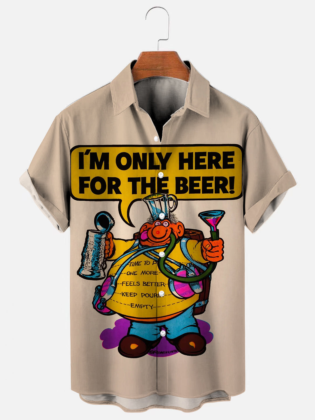 Vintage 1980s I'm Only Here For The Beer Cartoon Short Sleeve Shirt