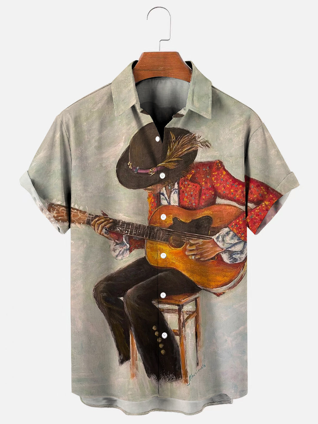Vintage Music Print Men's Hawaiian Short Sleeve Shirt
